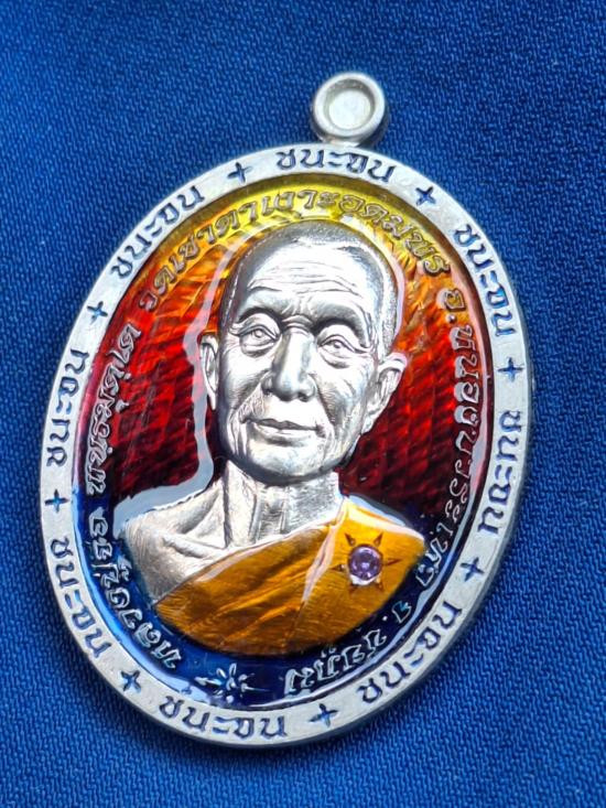 หลวงปู่รอด อาภัสสโร เหรียญมังกรรวยรับทรัพย์ เนื้อเงินรมซาติน ลงยาจีวร NO.๑๑๘ |