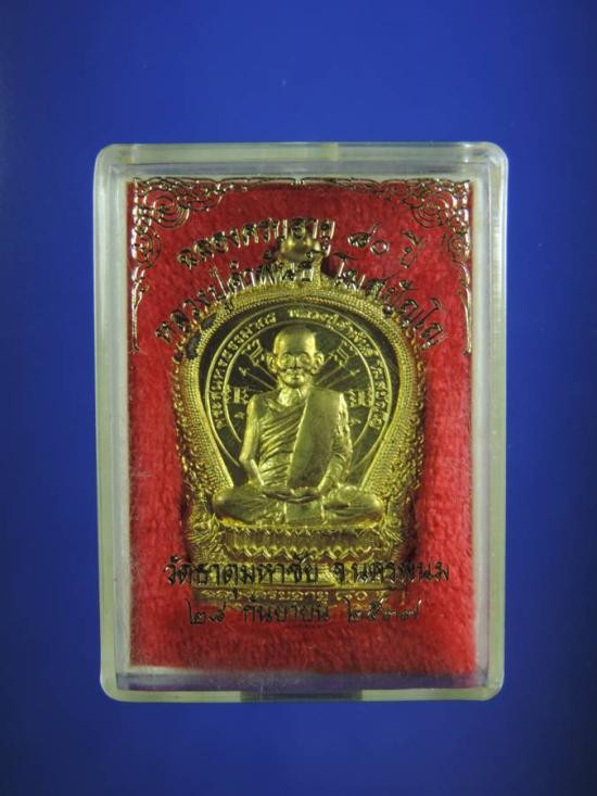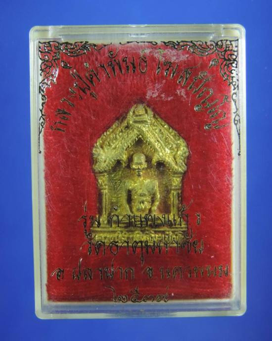 พุทธชยันตีเนื้อแดง หลวงปู่ผาด วัดบ้านกรวด เกศาคำหมากในพิมพ์ ผงตะไบทองคำวิบวับๆ เกศาเยอะๆสร้างน้อย กล่องเดิม |