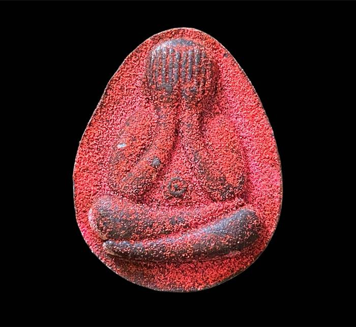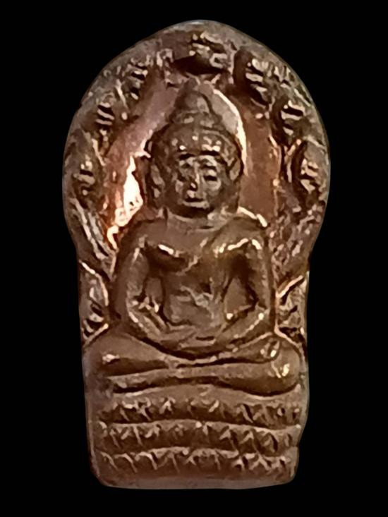 พระปรกใบมะขามรุ่นแรกหลวงปู่ชอบ ฐานสโมปี 2533 เนื้อทองแดงผิวไฟ |