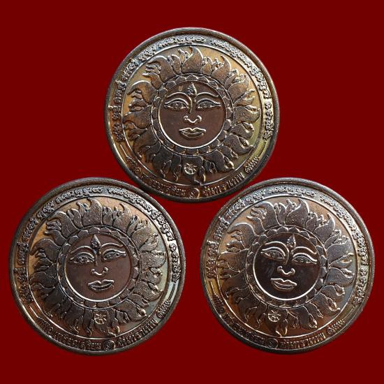 ชุด 3 องค์...เหรียญสุริยันต์ จันทราเทพ เนื้ออัลปาก้า ปี 2556 หลวงปู่สิงห์ วัดบ้านป่าตะแบง จ.นครราชสีมา พร้อมซองรูปเดิมจากวัด |