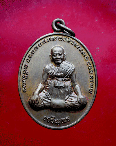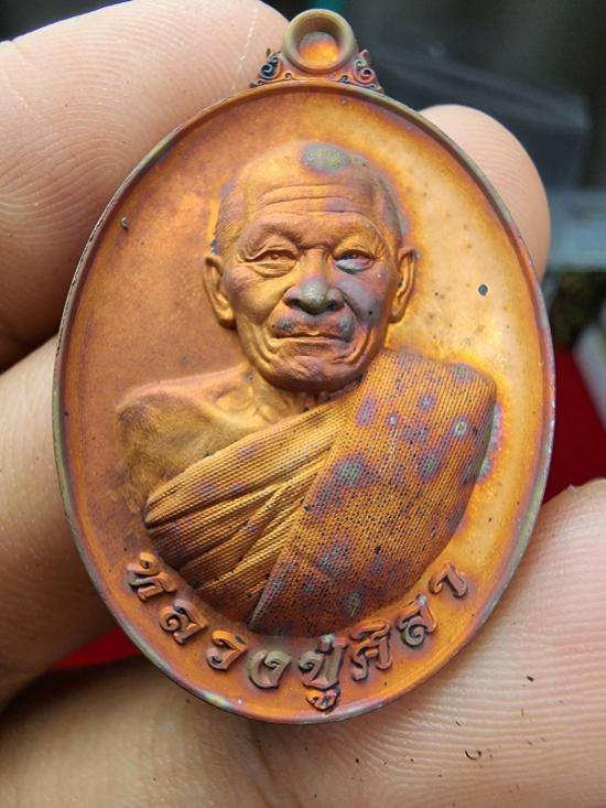 เหรียญบูชาครู หลวงปู่สูนย์ วัดป่าอิสระธรรม เนื้อสัตตะลงยาแดงลงยาจีวร |