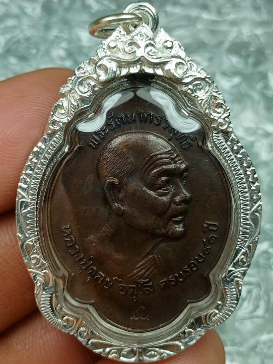 เปิดประมูลเหรียญเปิดโลกหลวงปู่ศิลา เนื้อทองแดงผิวรุ้งฝังพลอยนพเก้าเลข ๙๐ |