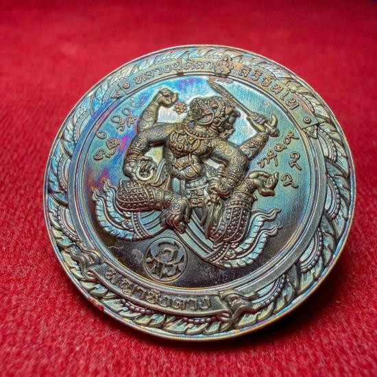 (เลขสวย 1)เหรียญไก่ฟ้ามหาเศรษฐี ที่ระลึกฉลองวิหารหลวงพ่อทอง ปี2559 เนื้อชนวน หมายเลข 1 มีกล่อง |