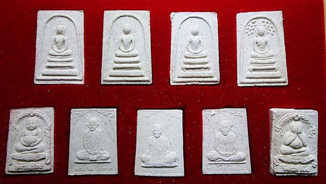 พระผงโต๊ะหมู่ รุ่นสร้างปราสาทฯ หลวงปู่หงษ์ พรหมปัญโญ สุสานทุ่งมน จ.สุรินทร์ ปี 45 เนื้อแก่มวลสารสีน้ำตาลเข้ม มีเกษาเยอะมาก สร้างแค่ 1000 องค์ |