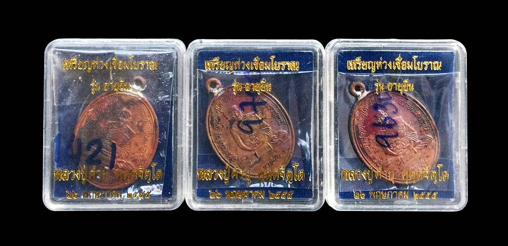 +!!เคาะเดียวllดง ตลอดสาย!!+ (รับ 3 เหรียญ) เหรียญ ห่วงเชื่อม หลวงปู่คำบุ วัดกุดชมภู จ.อุบลราชธานี ปี55 เนื้อทองแดง แท้ทันหลวงปู่อีกรุ่น ตอกโค้ดสวยๆตามรูป พร้อมกล่องครับ |