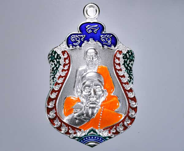 เหรียญยืน หลวงปู่มหาศิลา สิริจันโท เนื้อเงินลงยาแดง หมายเลข 851 รุ่นอายุวัฒนมงคล 81 จ.กาฬสินธุ์ |
