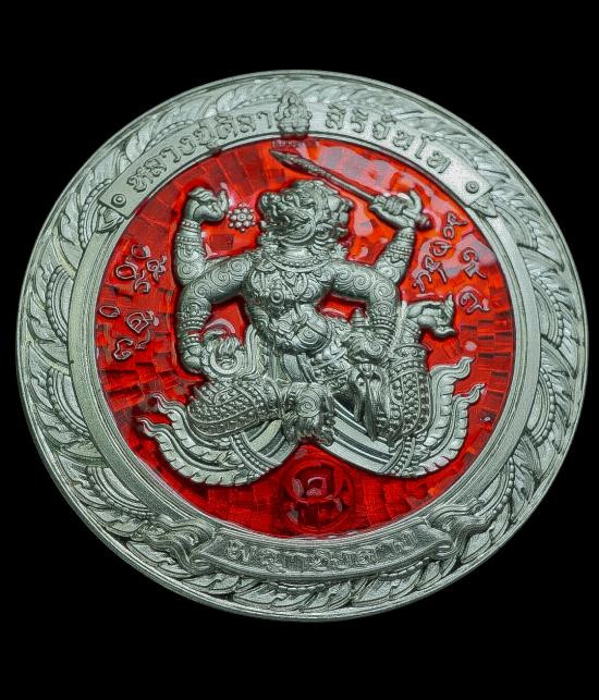 วัดใจ เหรียญพญาชิงดวง หลวงปู่ศิลา เนื้อเงินลงยาแดง เลข 137 สวยๆ มีกล่องครบครับ |