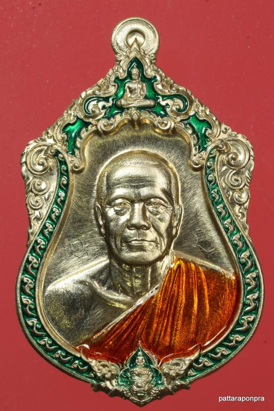เหรียญยืนอายุวัฒนมงคล81 หลวงปู่มหาศิลา สิริจันโท เนื้อเงินลงยาจีวร เบอร์ 227 |