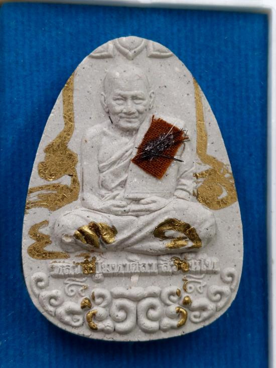 พระผงนั่งเมฆเลื่อนยศ หลวงปู่ศิลา สิริจันโท เนื้อขาวผงพุทธคุณจารหมึกทอง |