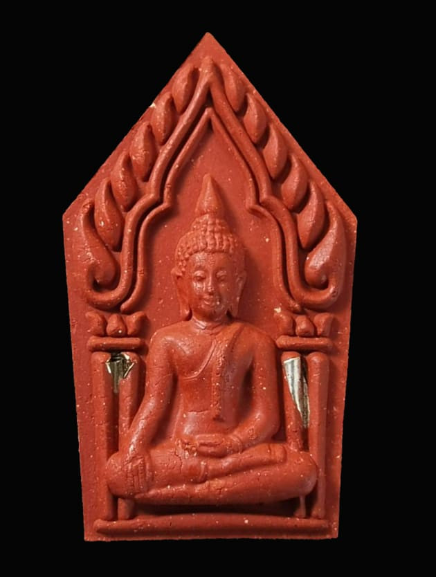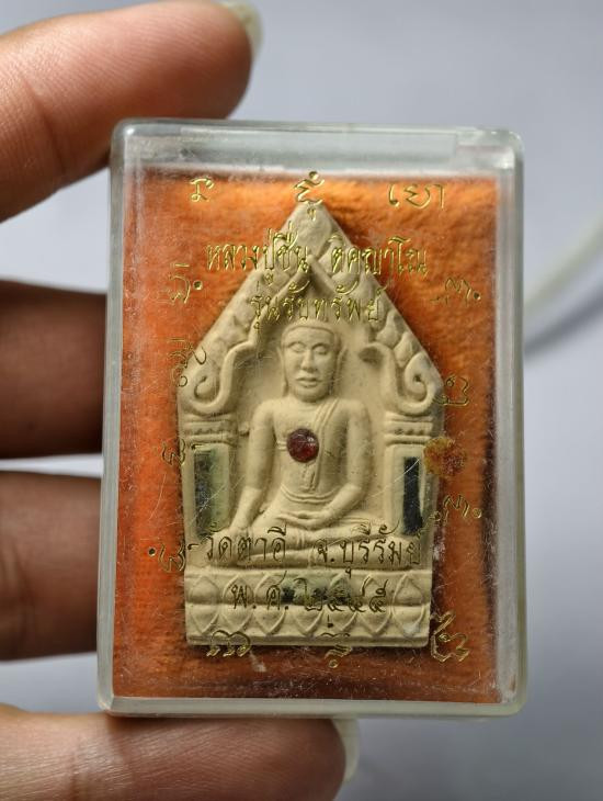 50.-/// หลวงพ่อชื่น วัดตาอี พระขุนแผน รุ่น รับทรัพย์ เนื้อสมเด็จผงเกสรผสมอิธิเจ ฝังพลอยตะกรุด |