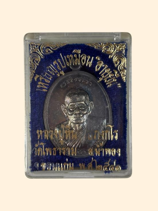 เหรียญแปดเหลี่ยมรวยแปดทิศ โชคอะนันต์ หลวงปู่มหาศิลา หลวงปู่ศิลา สิริจันโท ธรรมอุทยาน วัดพระธาตุหมื่นหิน จ.กาฬสินธุ์ เนื้อเงินลงยาน้ำเงิน ลายเซ็นทองคำ เลขเรียง ๗๖๕ พระศรีอริยเมตไตร เลข ๕๕๓๒ มีกล่องเดิม |