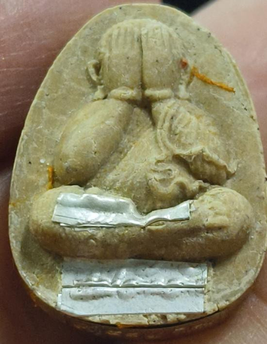 ล็อกเก็ตจัมโบ้ ยืนหลวงปู่มั่น ภูริทัตโต ฉากขาวงาช้าง หลังเงินรู หมายเลข ๗ มวลสารบรรจุด้านหลัง |