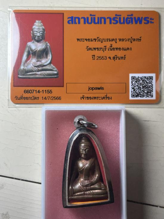 พระจอมขวัญบรมครู หลวงปู่หงษ์ วัดเพชรบุรี จ. สุรินทร์ 2553 เนื้อทองแดงพร้อมตลับพุก มีบัตรครบ |