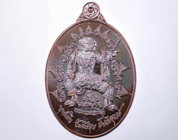 เหรียญนักกล้าม หลวงพ่อมุม วัดปราสาทเยอร์ เนื้อทองแดง ปี2517 บล๊อคประคตสั้น |