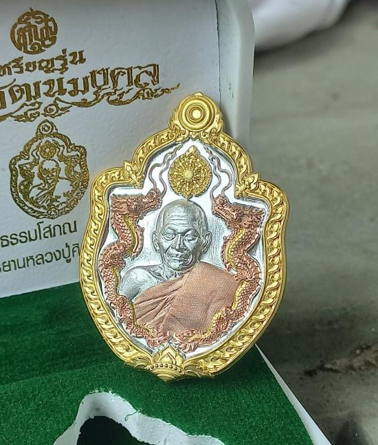 หลวงปู่มหาศิลา ไหว้ครู65 เนื้อเงิน ผิวกระจก ใสวิ้งๆจมูกโด่งๆ เลข 350 กล่องเดิม คัดสวยๆ |