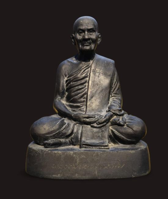 รูปหล่อ รุ่นแรก หลวงปู่ปัน วัดเทพนิมิตรจันทร์แสงวนาราม รายการพิเศษ เนื้อเหล็กน้ำพี้อุดผงฝังตะกรุดทองคำ หมายเลข 372 |
