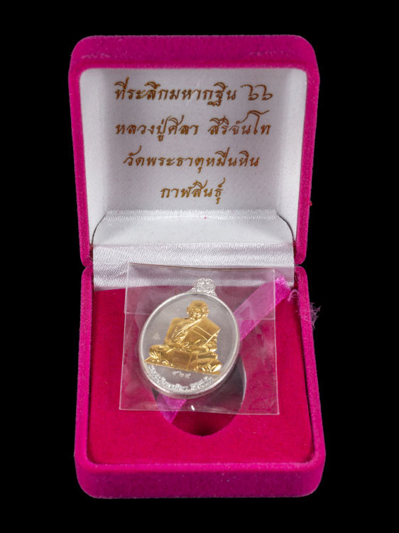 เหรียญโชคดี หลวงปู่มหาศิลา สิริจันโท จ.กาฬสินธุ์ 2565 เนื้ออัลปาก้าลงยาสีน้ำเงิน(ซีลเดิม) |