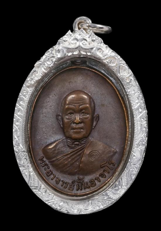เหรียญรุ่น 69 พระอาจารย์ฝั้น อาจาโร ปี 2518 เนื้อทองแดง ตอกโค๊ต จ.สกลนคร สภาพสวยสมบูรณ์ผิวเดิมๆ พร้อมเลี่ยมเงินงานมืออย่างดี |