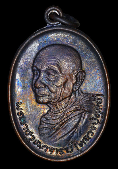 เหรียญมังกร ทองแดงผิวรุ้ง ซีนเดิมเหรียญรุ่นอายุวัฒนมงคล81 หลวงปู่มหาศิลา สิริจันโท พิมพ์ มังกรคู่(หลวงปู่ศิลา) |
