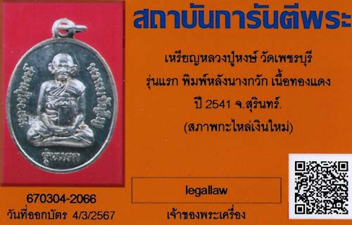 ขายขาดทุน!!!เหรียญรุ่นแรก หลวงปู่หงษ์ วัดเพชรบุรี สุรินทร์+บัตรรับรองพระแท้*228 |
