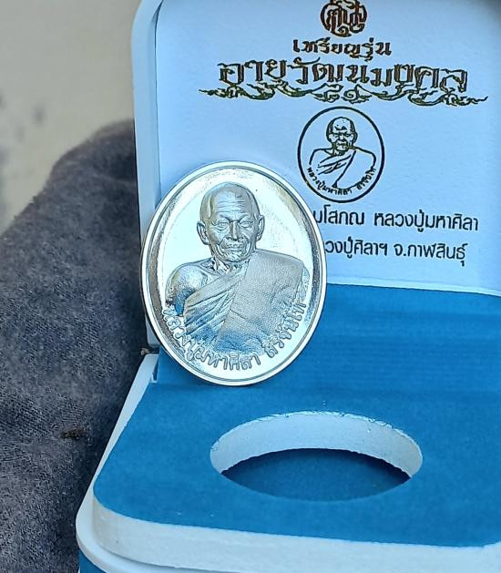 เหรียญพหูรมาน รุ่นโชคเหนือเมฆ หลวงปู่ศิลา เมตตาอธิษฐานจิต เนื้อเงินลงยาสีเขียว ไม่แกะซีลลุ้นเลขสวย |