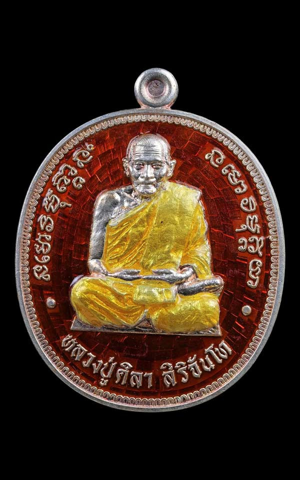 หลวงปู่มหาศิลา หลวงปู่ศิลา รุ่น รวยรวยล้านเทวดารักษา เนื้อเงินลงยาแดงเทอร์ควอยซ์ เบอร์ 162 |