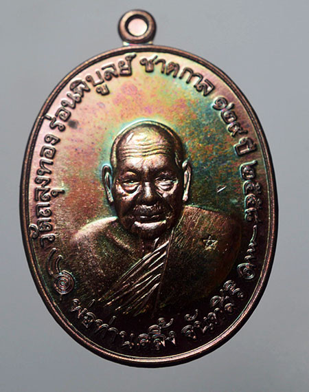 เหรียญหลวงพ่อปลอด วัดหัวป่า ปี2538 รุ่นควายขวิด เนื้อทองฝาบาตร |
