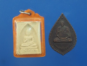 200 แดง พระ 2 รุ่น พระพุทธฐานธรรมหิรัญบรรพต พ่อท่านคล้อย วัดถ้ำเขาเงิน อ.หลังสวน จ.ชุมพร รุ่นแรก ปี 2533-2536 |