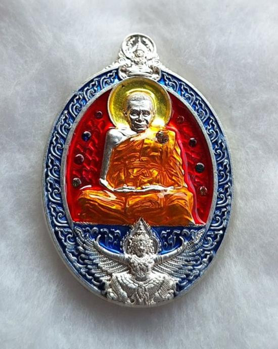 หลวงปู่อิ่ม วัดทุ่งนาใหม่ จ.นครศรีธรรมราช เนื้อเงินลงยา ฝังเพชร รุ่นเลื่อนยศปลดหนี้ No.21 |