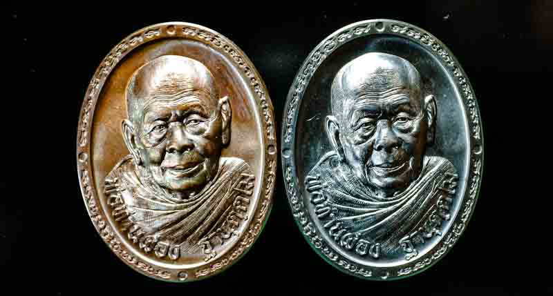 หลวงปู่อิ่ม วัดทุ่งนาใหม่ จ.นครศรีธรรมราช รุ่นเจ้าสัวพันล้าน106ปี เนื้อเงินฝังเพชร No.60 |