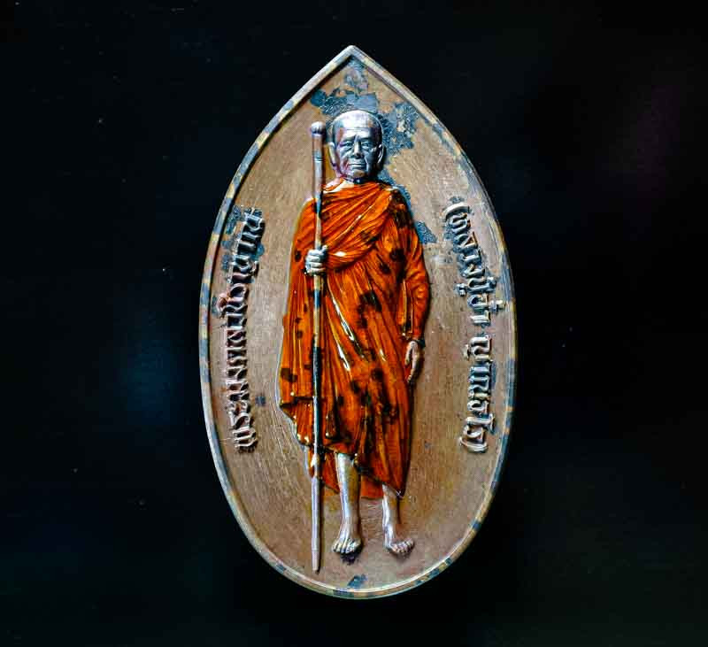 หลวงปู่อิ่ม วัดทุ่งนาใหม่ จ.นครศรีธรรมราช เนื้อเงินลงยา ฝังเพชร รุ่นเลื่อนยศปลดหนี้ No.25 |