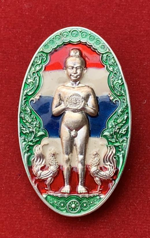 เหรียญไอ้ไข่ปลดหนี้ วัดสนธ์ จ.นครศรีธรรมราช เนื้อเงินลงยาลายธงชาติ หมายเลข ๗ |