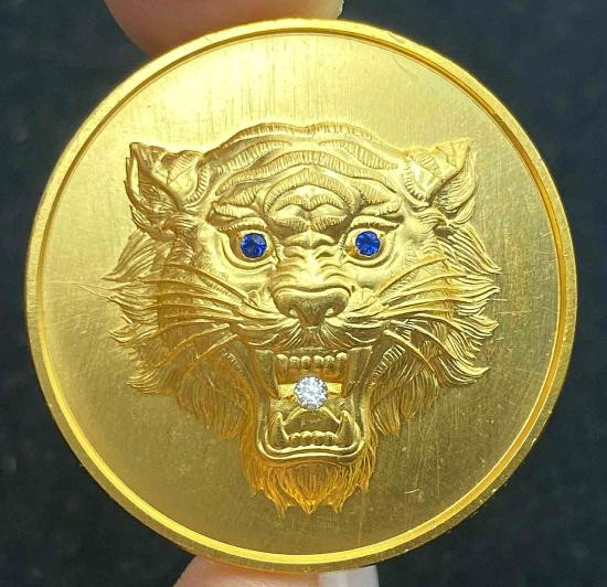 *กะหลั่ยทองพ่นทราย ฝังเพชร 20 เม็ด เหรียญหันข้าง หนุ่นดวง หลวงปู่อิ่ม วัดทุ่งนาใหม่ นครศรีธรรมราช สวยมาก เคาะเดียวแดง* |