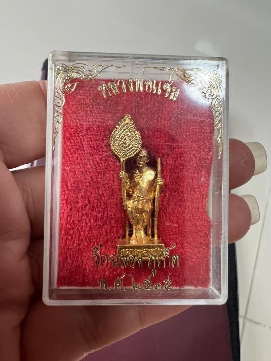 รูปหล่อหลวงพ่อแช่ม วัดฉลอง จ.ภูเก็ต นั่งเก้าอี้ ถือพัดยศ ปี 2535 กาหลั่ยทอง ก้นวงเดือน พร้อมกล่อง |