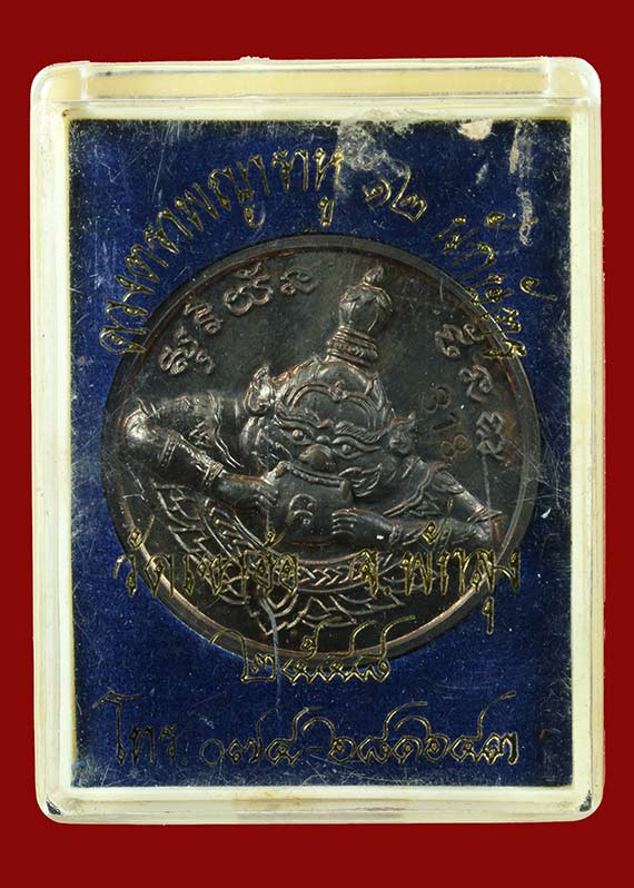 เหรียญพญาราหู พระอาจารย์ประสูติ วัดในเตา เหรียญเทพราหู เนื้อสัมฤทธิ์แดงกรรมการ ฝังเม็ดกริ่ง 3องค์ (1) |