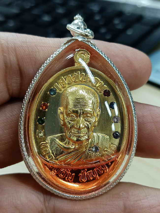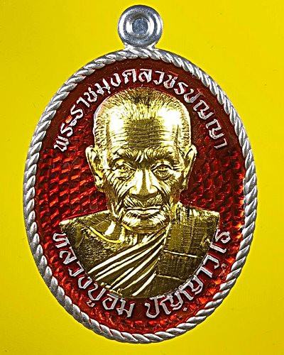 ..เหรียญ รุ่น ชนะมาร หลวงปู่อิ่ม ปัญญาวุโธ วัดทุ่งนาใหม่ จ.นครศรีธรรมราช เนื้อ 2 K ฝังเพชร ลงยาแดง (สร้าง 19 เหรียญ) No.777 พร้อมกล่องเดิมครับ |