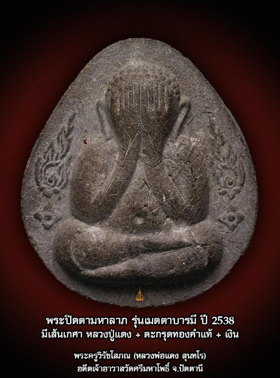 พระปิดตามหาลาภ ตะกรุดทองคำ + ตะกรุดเงิน + เส้นเกศา ลป.แดง ศรีมหาโพธิ์ สภาพสวย |