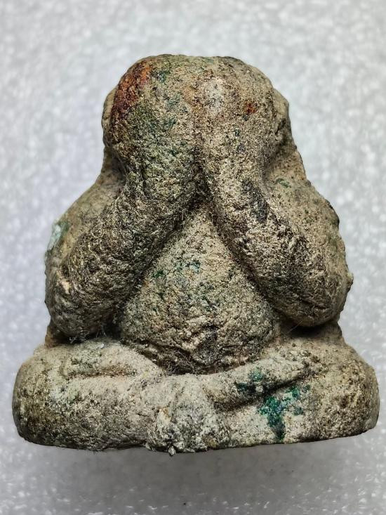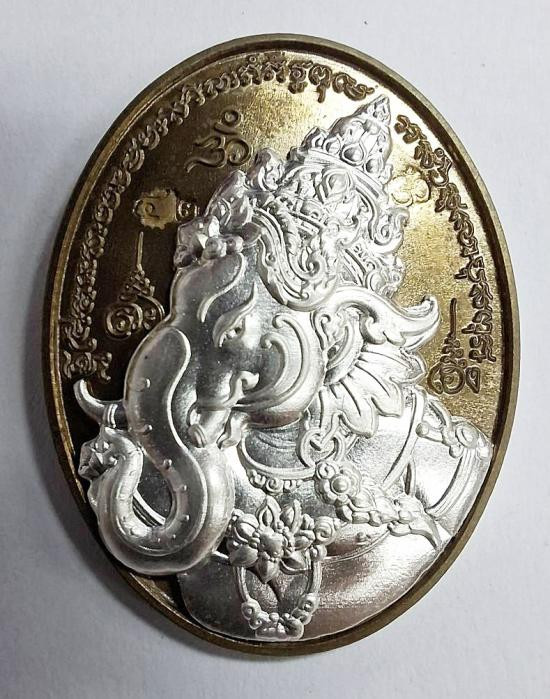 เหรียญพระพิฆเนศ รุ่น อิ่มทรัพย์ -- หลวงปู่อิ่ม วัดทุ่งนาใหม่ -- ชนวนหลังเรียบ หลังจีวร จารหมึกแดง หน้ากากเงิน เลข ๔๒ -- |