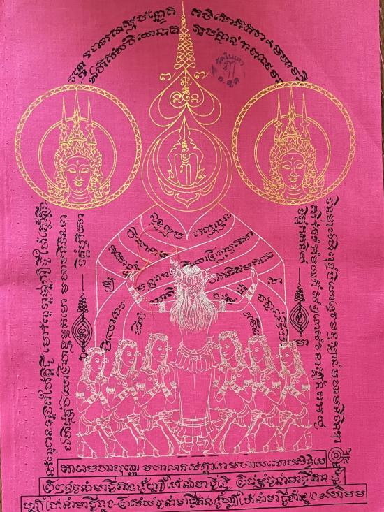 เหรียญพระพิฆเนศ รุ่น อิ่มทรัพย์ -- หลวงปู่อิ่ม วัดทุ่งนาใหม่ -- ทองทิพย์ซาตินลงยาส้ม หน้ากากนวะ หลังหน้ากากพระพรหมนวะ เลข ๓๓ -- |