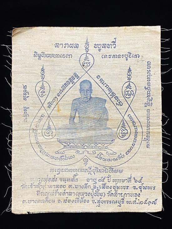 ผ้ายันต์หลวงพ่อสงฆ์ วัดเจ้าฟ้าศาลาลอย ที่ระฤกสร้างศาลา(หลวงปู่ช้อย)วัดสำเภาทอง ปี2517สวยๆ |