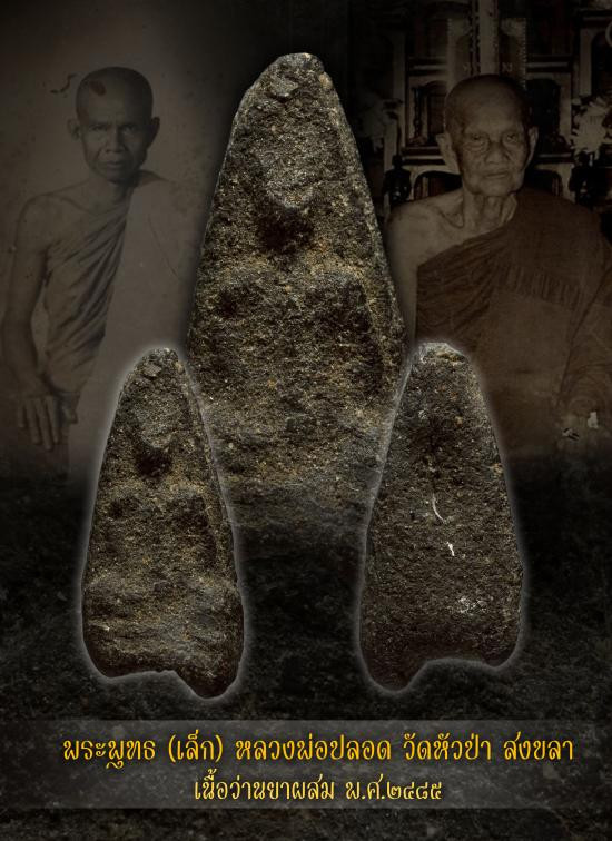 วัดใจ แบ่งปันพระแท้ หลวงพ่อปลอด วัดหัวป่า ระโนด สงขลา พิมพ์พระพุทธเล็ก เนื้อว่านยาผสม ยุคต้น ๒๔๘๕ (หายาก ยอดนิยม) |