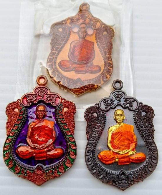 เหรียญรุ่นแรก หลวงพ่อแก่นจันทน์ วัดชมพูนิมิต จ.สตูล เนื้อทองฝาบาตรรมดำ (บล็อกนิยมสุด) |