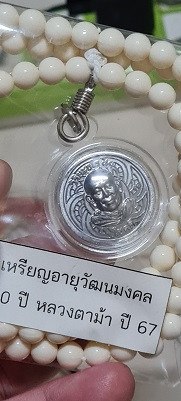 เหรียญอายุวัฒนมงคล 80 ปี เนื้อตะกั่ว(มีค่าดั่งทองคำ)หลวงตาม้า วัดถ้ำเมืองนะ พร้อมรอยจารหลวงตาม้า เลี่ยมจากวัดพร้อมประคำ |