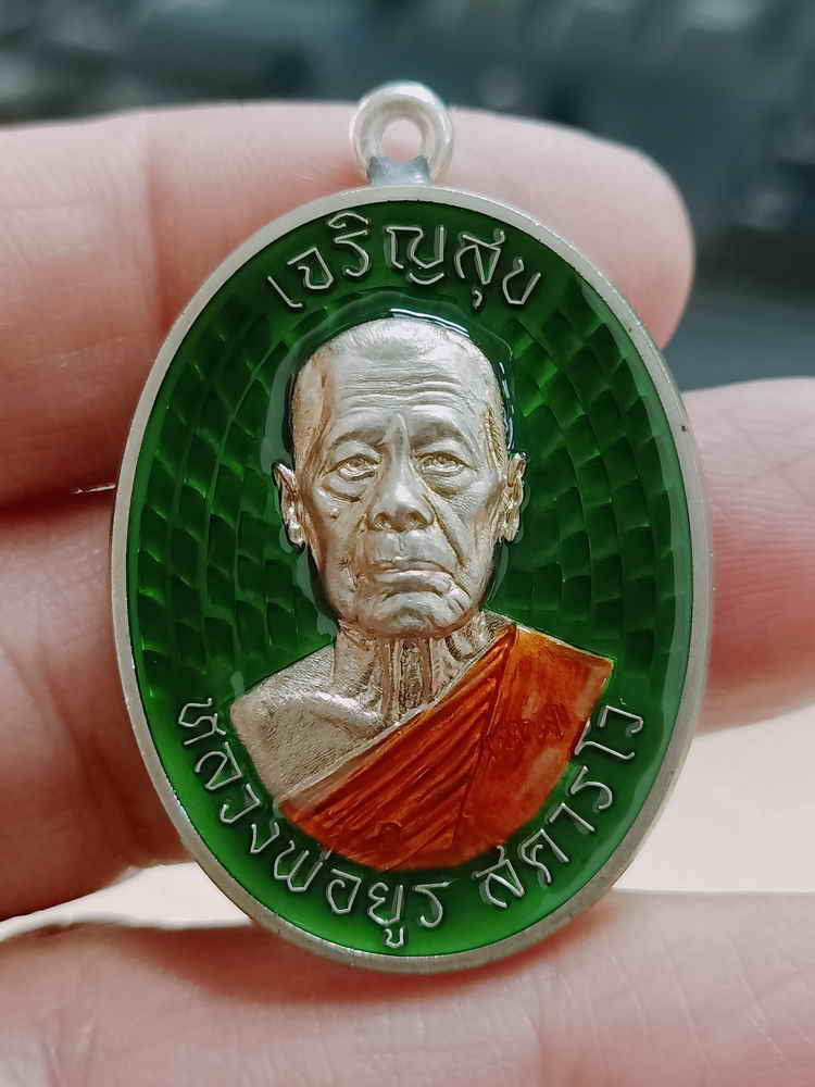 วัดใจ 100 PSGA เหรียญเจริญสุข งานบุญกฐิน หลวงพ่อยูร สคารโว วัดพนมเศษเหนือ จ.นครสวรรค์ ปี 2566 เนื้ออัลปาก้า ลงยาเขียวน้ำเงิน จีวร หมายเลข 51 กล่องเดิม ***ป๋องสุพรรณการันตี |