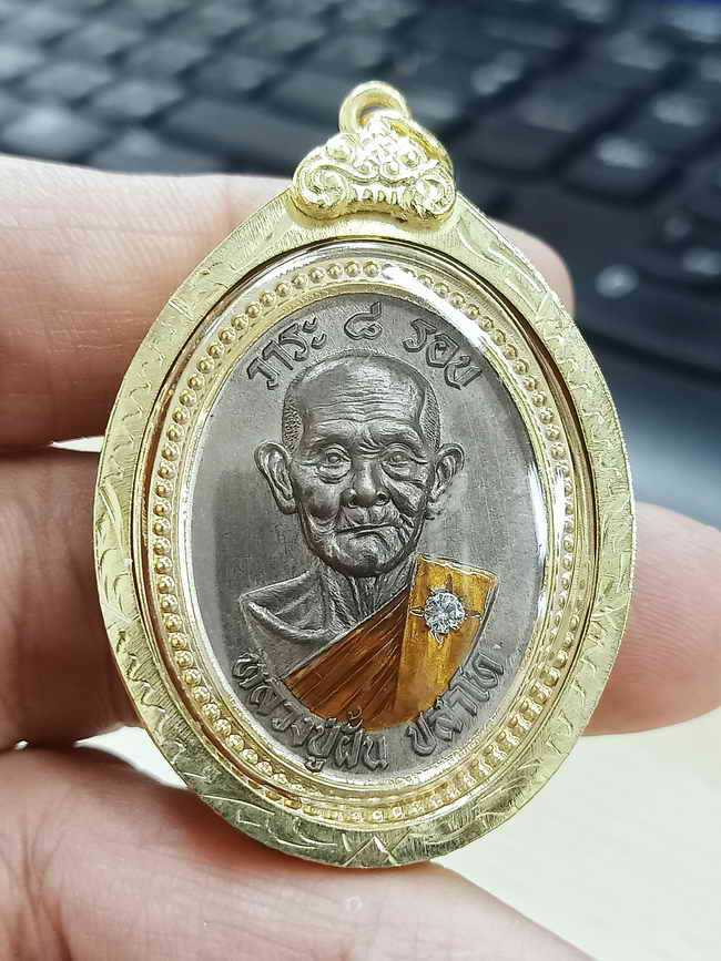 วัดใจ 100 พร้อมใช้ เหรียญไข่ปลา วาระ 8 รอบ หลวงปู่ฝั้น ปสาโท วัดศรีถมอรัตร์(หน้าผา) จ.เพชรบูรณ์ 2568 เมฆสิทธิ์ ฝังเพชร ขอบหน้ากากชุบทองคำ เลี่ยมกรอบทอง หมายเลข 27 สร้าง 30 กล่องเดิม |