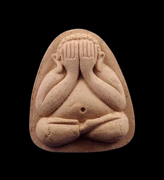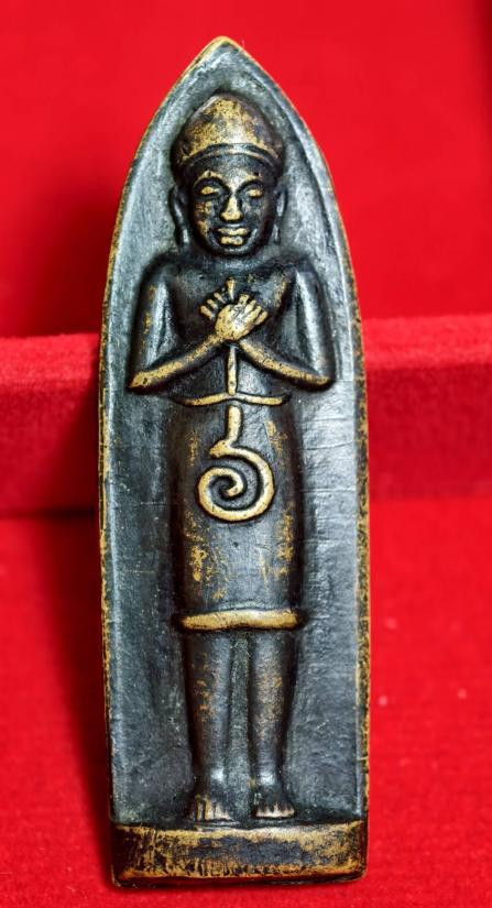 พระขุนแผนเพ็ชรกลับ พิมพ์ใหญ่ เนื้อดำ หลวงพ่อไพบูลย์ วัดอนาลโย จ.พะเยา สภาพตามรู |