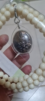 เหรียญหลวงตาม้าหลังท้าวเวสสุวรรณและผงดวงโพธิญาณ พร้อมรอยจารหลวงตาม้า วัดถ้ำเมืองนะประคำขาว เลี่ยมจากวัดพร้อมเชือกร่ม 2 องค์ |