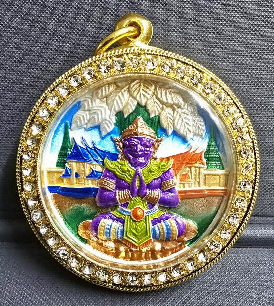 หนุมาน "สัมฤทธิ์ผล ดลบันดาน ประทานทรัพย์" วัดสนามชัย จ.อ่างทอง เพ้นลายหน้า-หลัง มาสเตอร์พีช(แบบที่ 4) ใส่ตลับอิตาลีชุบทองฝังเพชร สวยมากครับ หมายเลข ๓๐....พร้อมกล่อง พระสวยมาก องค์ใหญ่ขนาด 3.5 cm. |
