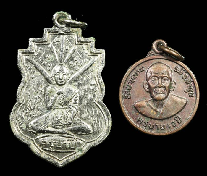 เหรียญครูบาขาวปี สะหลีห้ากิ่ง รุ่น 2 กะไหล่เงิน ปี ๒๕๐๐ และ เหรียญโชคลาภทวีคูณ |