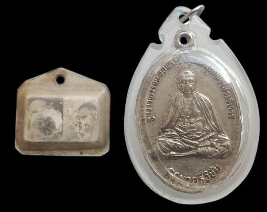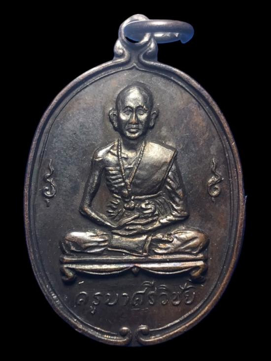 เหรียญครูบาศรีวิชัย ด้านหลังองค์พระติดจีวรและเส้นเกศาครูบา ครูบากฤษดา สุเมโธ วัดสันพระเจ้าแดง อ.บ้านธิ จ.ลำพูน |